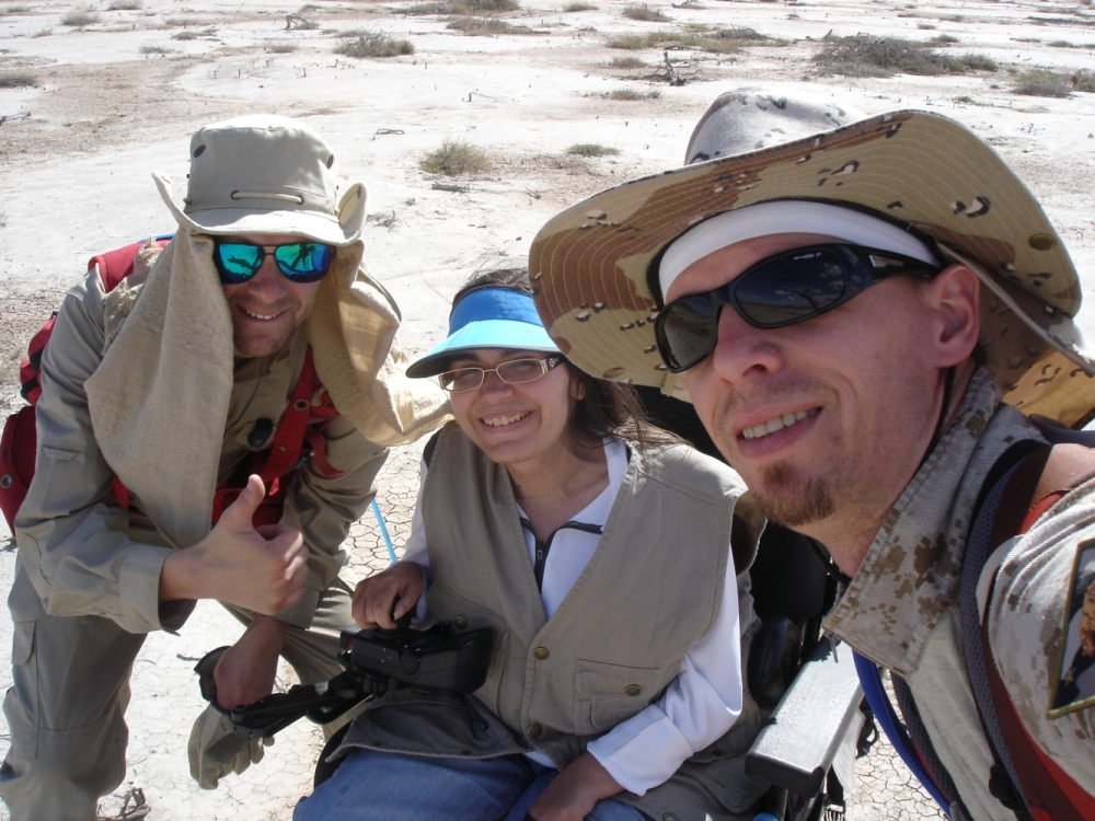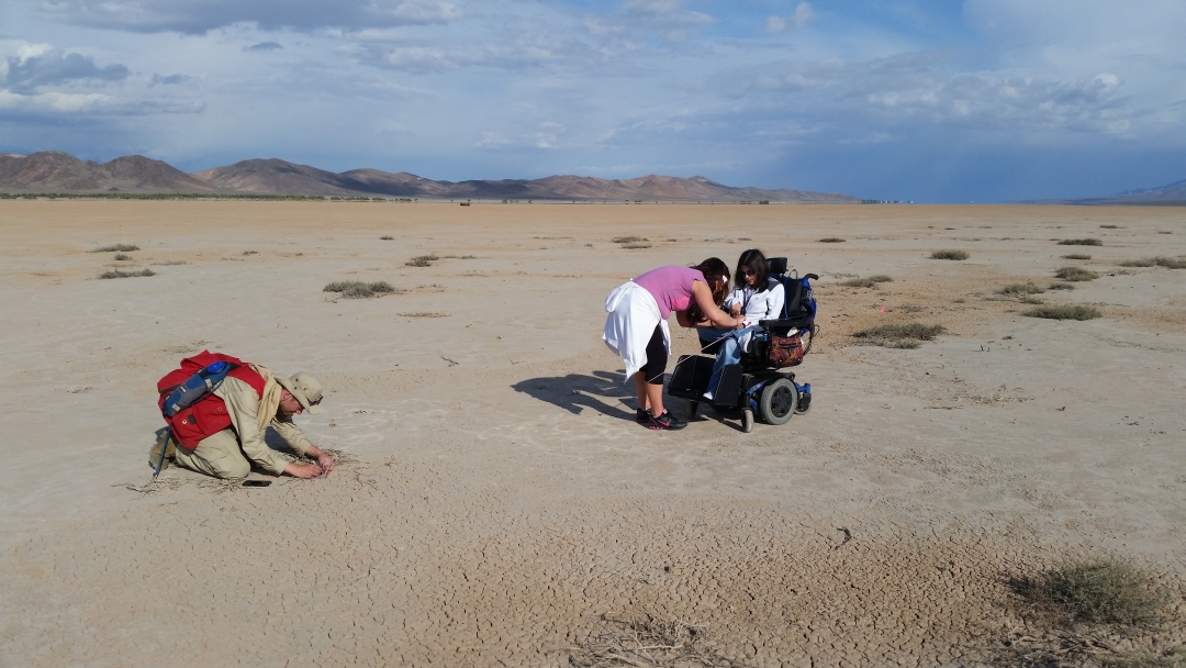 We headed back to my truck for a late lunch and had to charge Marissa's chair while we ate. Luckily my Toyota has a built-in inverter, because the soft terrain really made the chair work hard and the batteries were almost empty by 4pm. While we were eating we spotted another vehicle on the lake bed, it was parked right where we were going to end the day hunting. We finished up lunch and loaded up my truck and I drove it over to park at the new hunting spot while the rest of the group made the 1/2 mile trek and looked for meteorites along the way. The other vehicle turned out to belong Jason Utas, whom I'd met a few times previously at various meteorite events. He and a friend were out hunting and had found a couple as well, good times!
