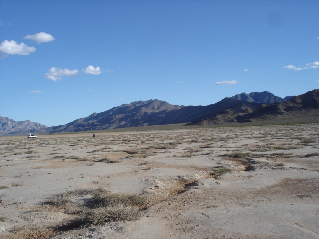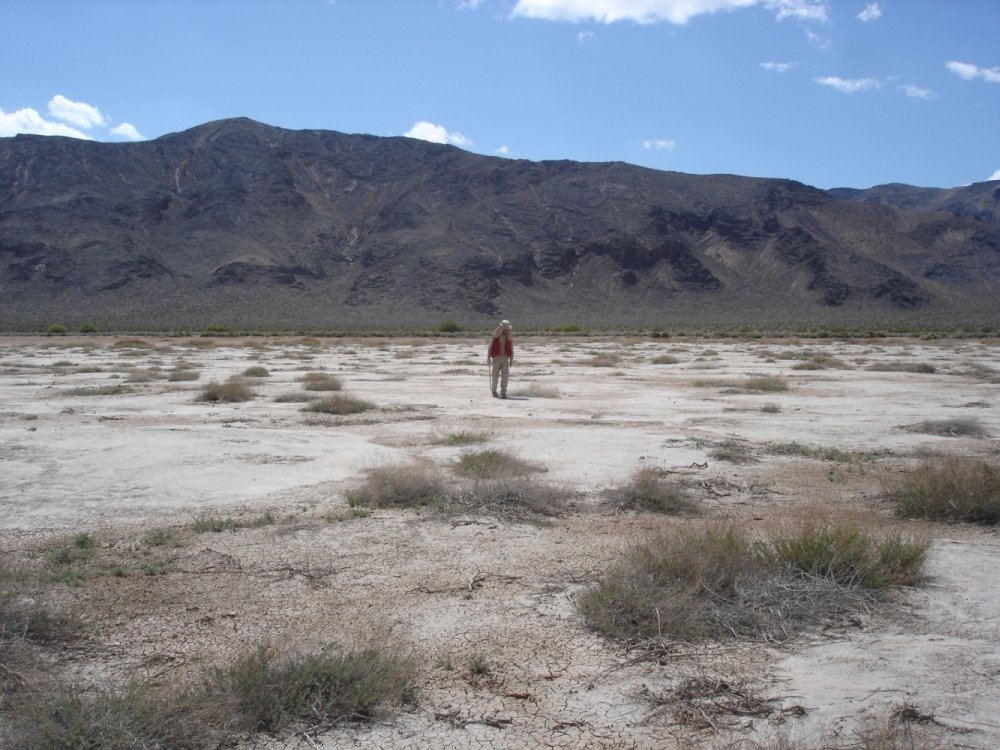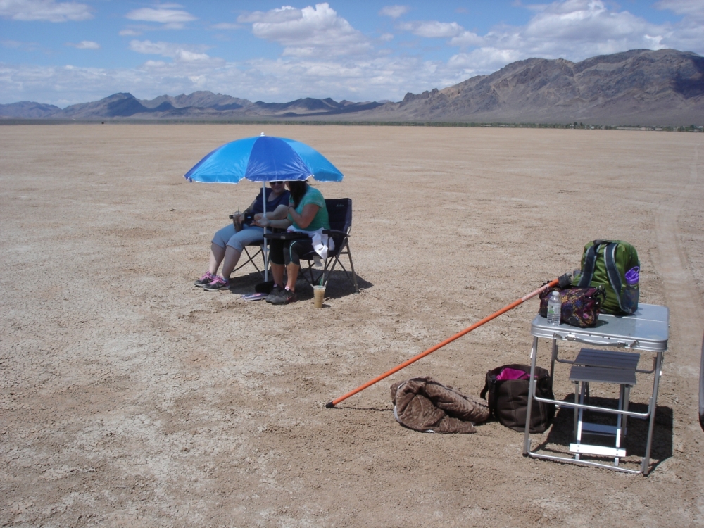 We parked just on the Nevada side of the state line and unpacked the back of my truck. We quickly realized that we had left Marissa's meteorite stick in the hotel room, oops! I pointed Rogan and Marissa into California to look for meteorites without me, Rogan would use his magnet stick for both of them, and Debbie and Autumn relaxed Club Med Nevada Dry Lake style. The temps never got much above 80*F, the following weekend it would be over 100*F at the same location so we lucked out.