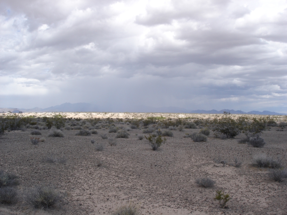 There was a storm in the mountains behind us, but all we got was the smell of desert rain. The rain would stop at the foot of the mountains, the open desert remained dry.