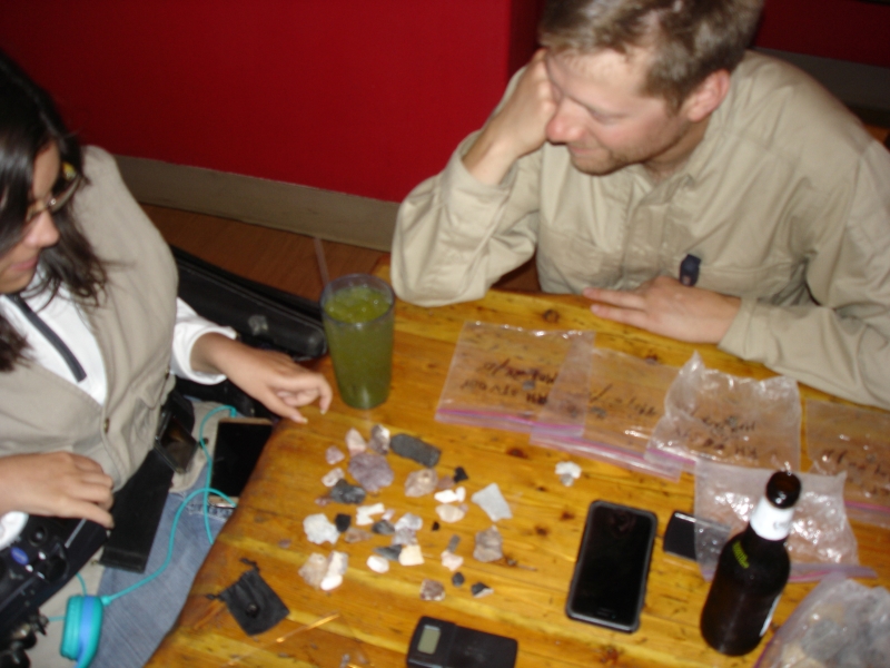 We all sat down for a final group dinner back at the hotel. Rogan is a geologist and had been collecting interesting rocks all weekend. He let Marissa pick a few of her favorite while we also laid out all our meteorite finds from the past three days.