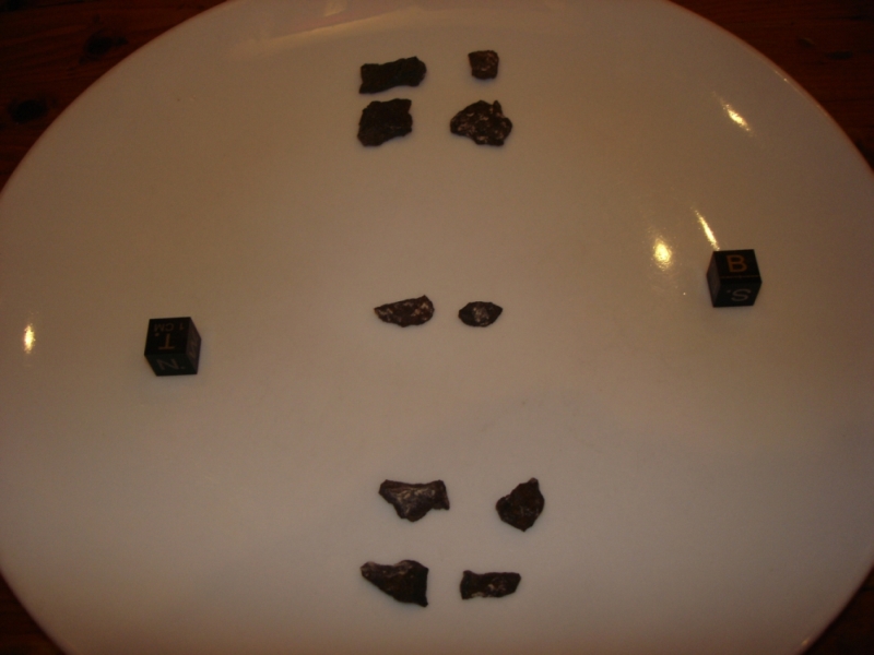 My four finds cleaned up to reveal a small face of fusion crust on each one, facing the camera in the picture below.